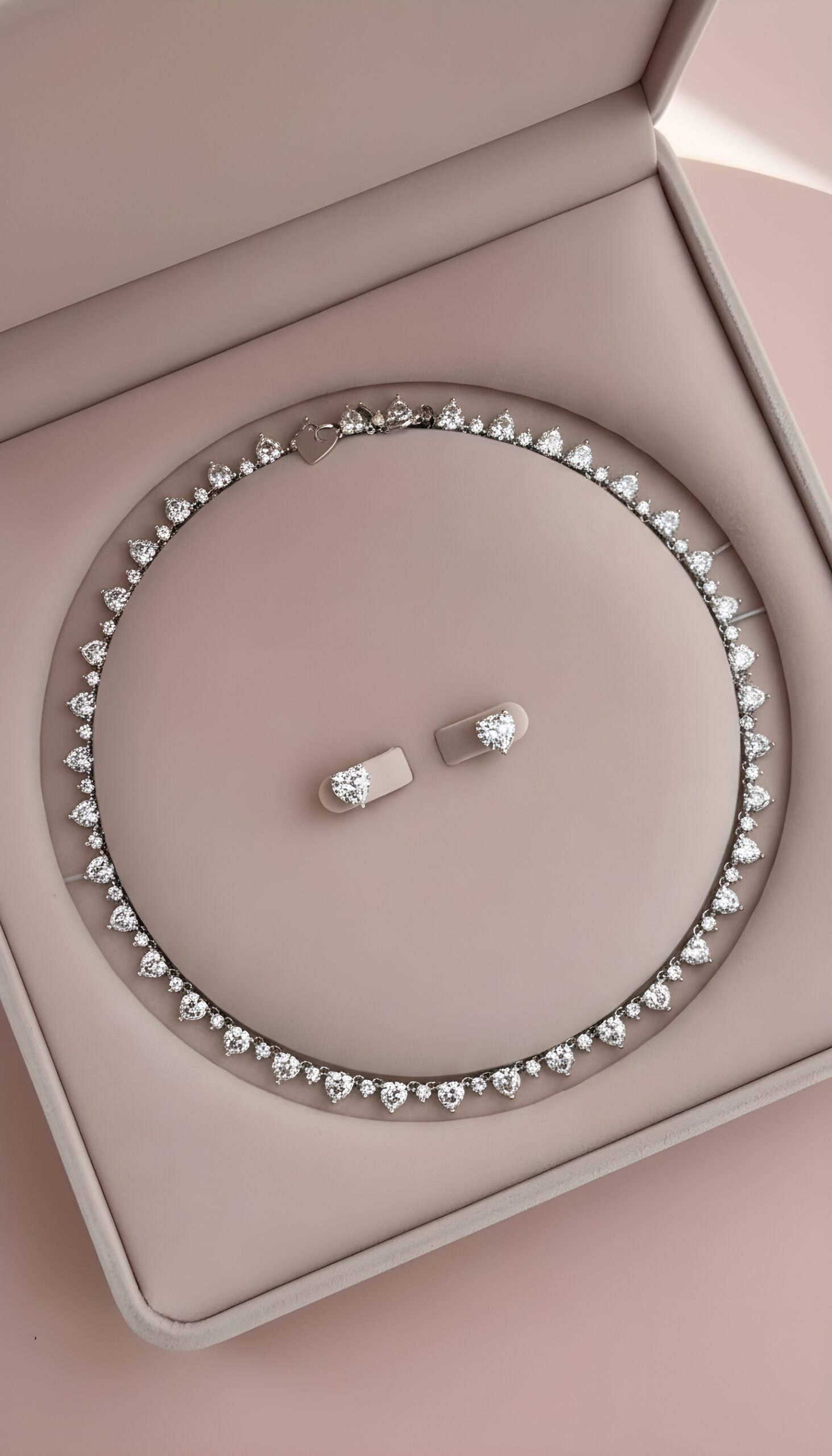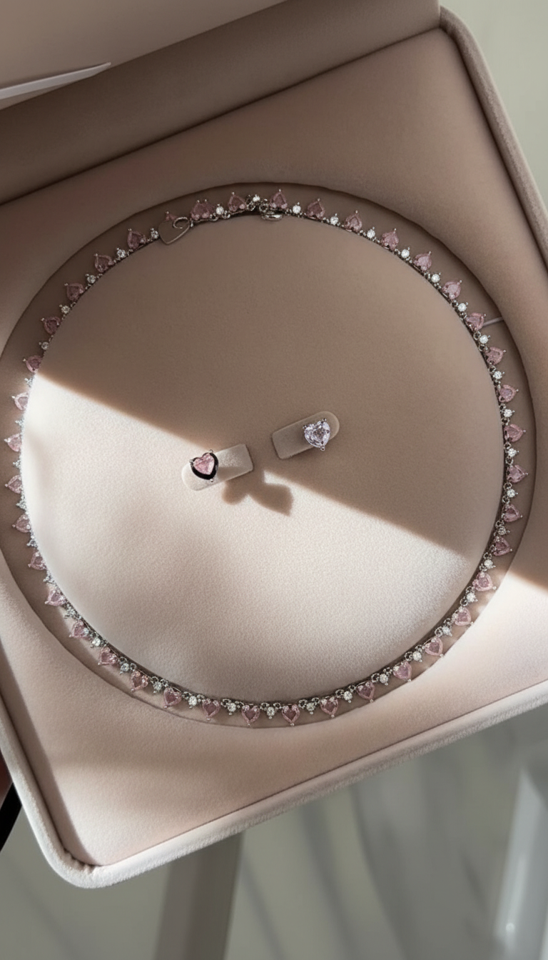 El collar Sweet Heart celebra la delicadeza y el encanto del amor en todas sus formas. Su diseño combina piedras en corte corazón y redondo, creando un juego de luces y reflejos que atrapan la mirada con cada movimiento. Cada detalle ha sido cuidadosamente elaborado para reflejar feminidad, ternura y un brillo sin igual.