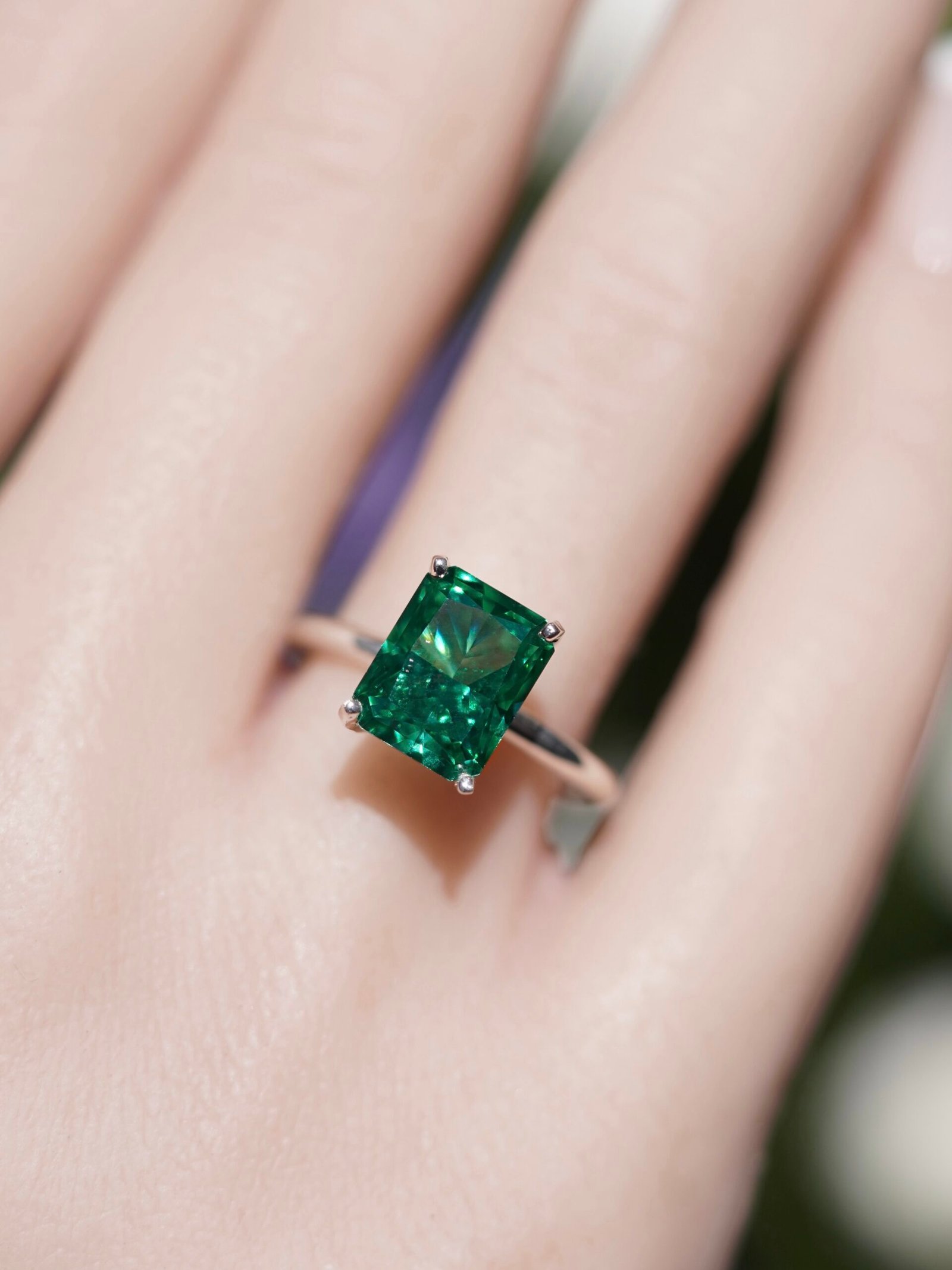 El anillo Jaqueline presenta un diseño meticulosamente elaborado en plata 925, con una deslumbrante zirconia Ice Crushed de 4 ct en corte esmeralda como pieza central, irradiando un resplandor elegante y refinado. Su estructura de solitario permite que la piedra brille con máxima intensidad, realzando su claridad y belleza. La banda delgada aporta un toque de delicadeza, asegurando un ajuste cómodo y ligero, ideal para el uso diario.