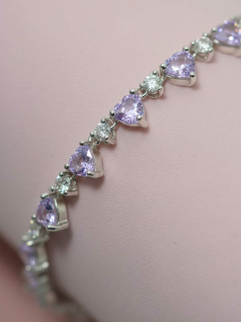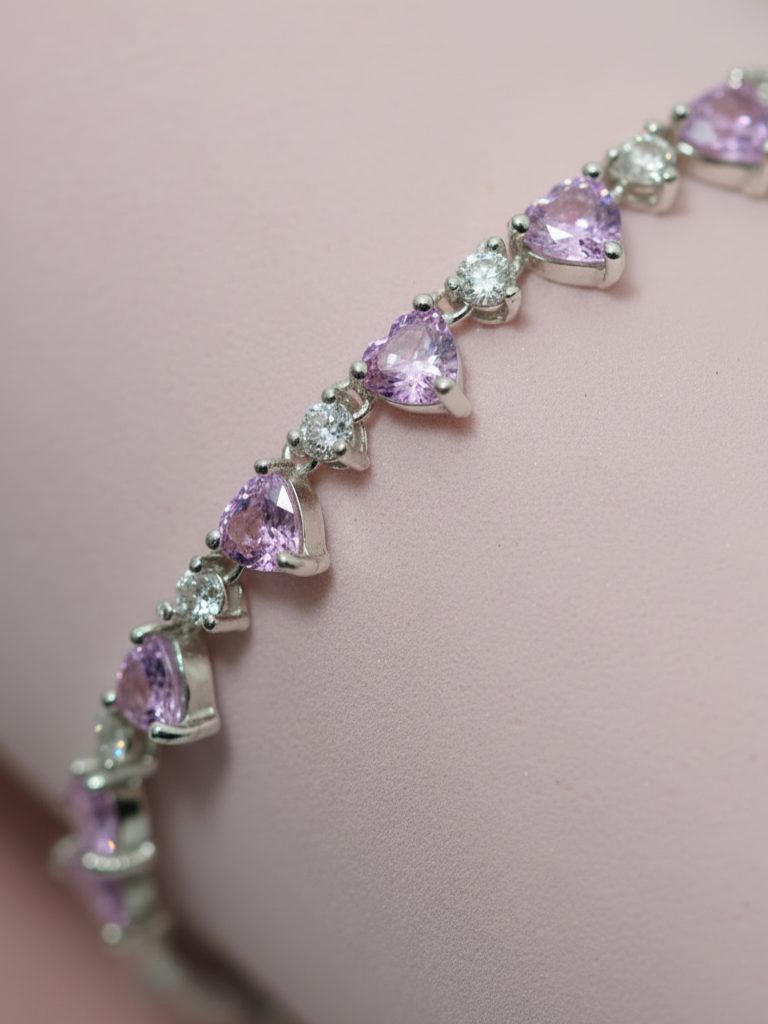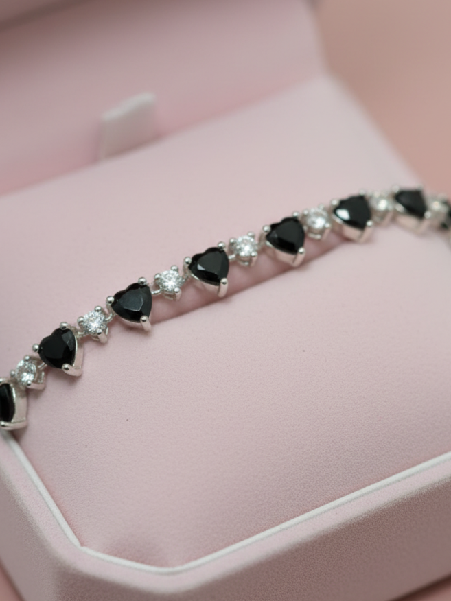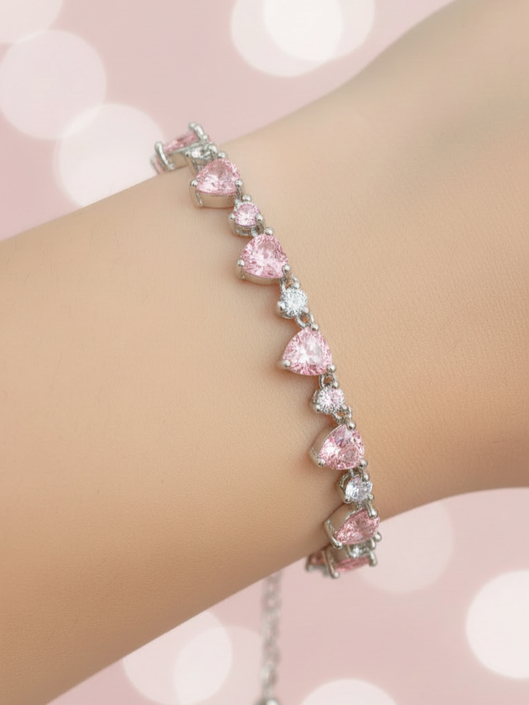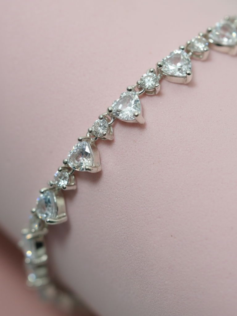 La pulsera Sweet Heart celebra la delicadeza y el encanto del amor en todas sus formas. Su diseño combina piedras en corte corazón y redondo, creando un juego de luces y reflejos que atrapan la mirada con cada movimiento. Cada detalle ha sido cuidadosamente elaborado para reflejar feminidad, ternura y un brillo sin igual.