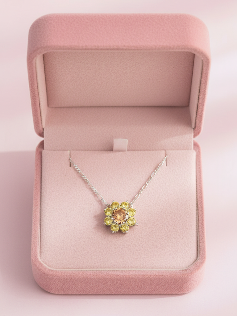 El collar Sunflower captura la belleza radiante de la naturaleza con un diseño inspirado en la delicadeza de una flor en plena luz. Su forma armoniosa y su brillo deslumbrante lo convierten en el accesorio perfecto para simbolizar alegría, energía y elegancia en cada ocasión.