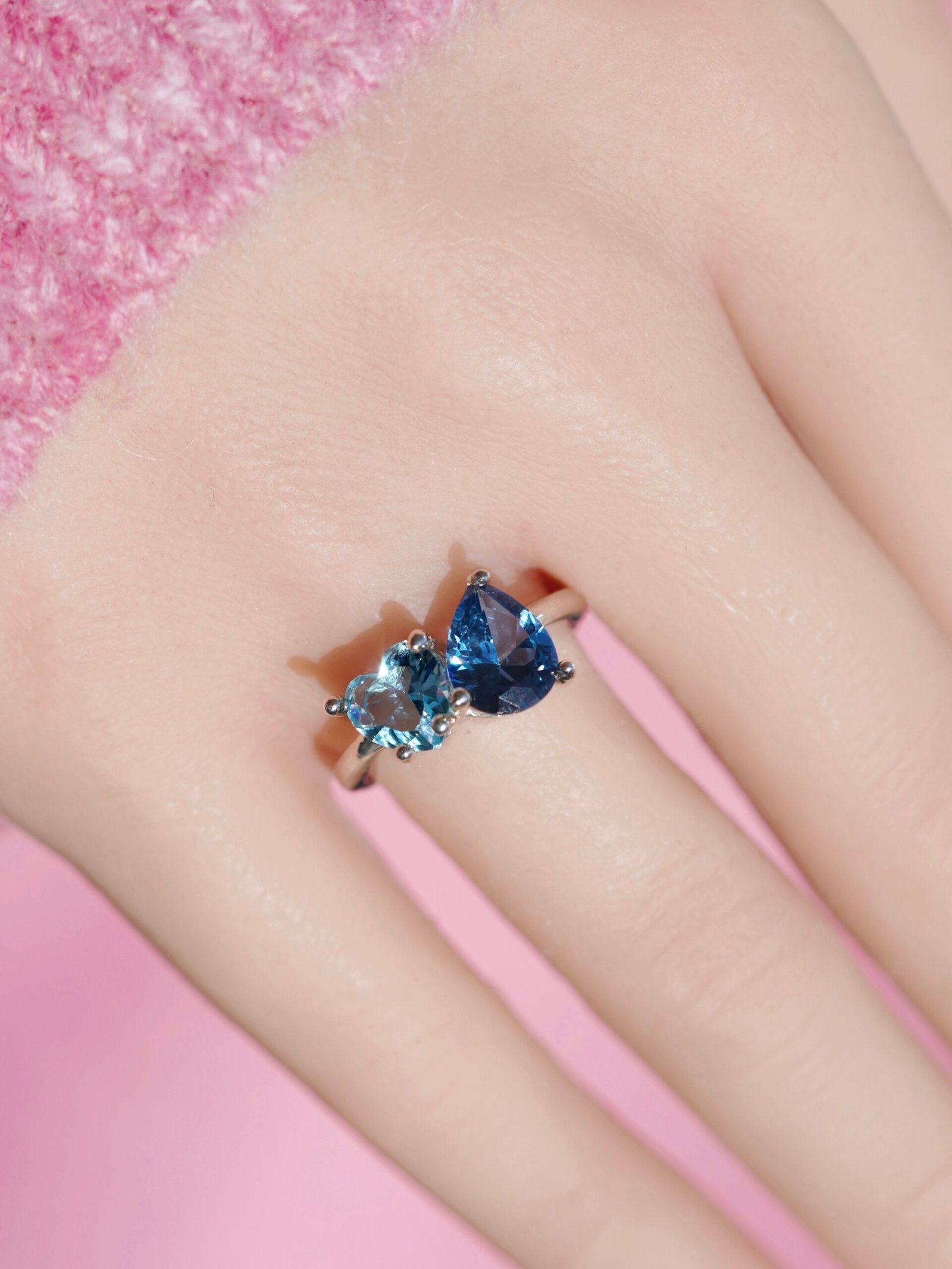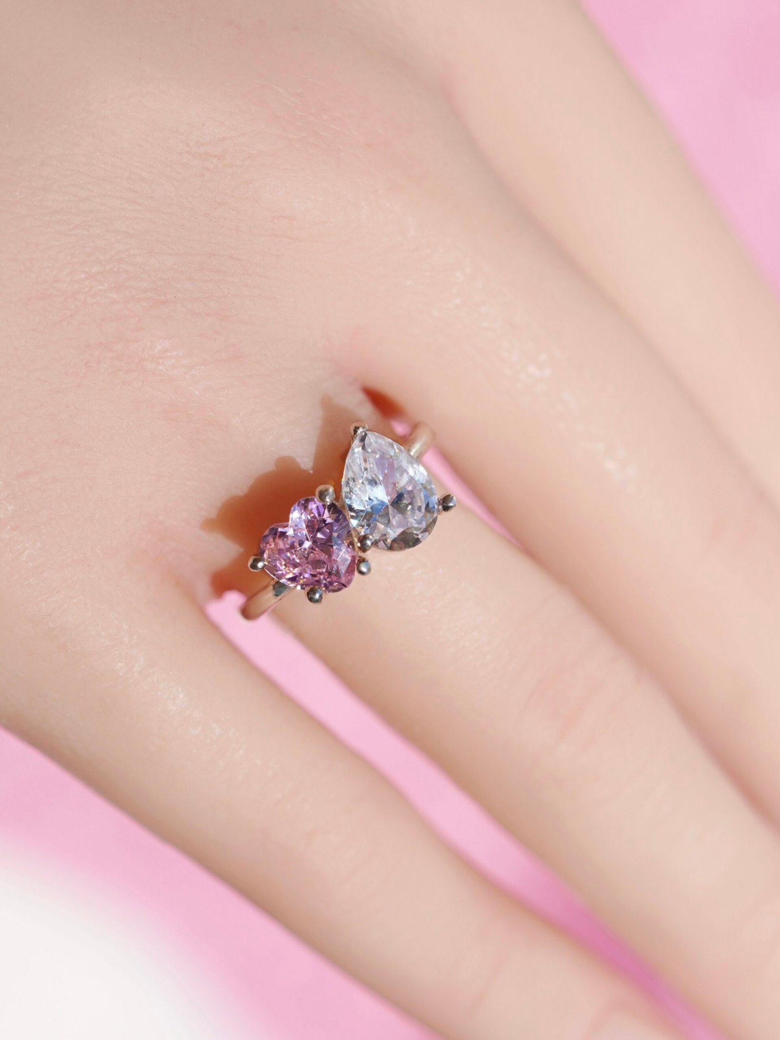 Elaborado en plata 925, este anillo combina dos deslumbrantes zirconias: una en corte corazón y otra en corte pera, reflejando el equilibrio perfecto entre emoción y sofisticación. Su diseño resplandece con una belleza única, mientras que su banda gruesa proporciona un ajuste cómodo y seguro para el uso diario.